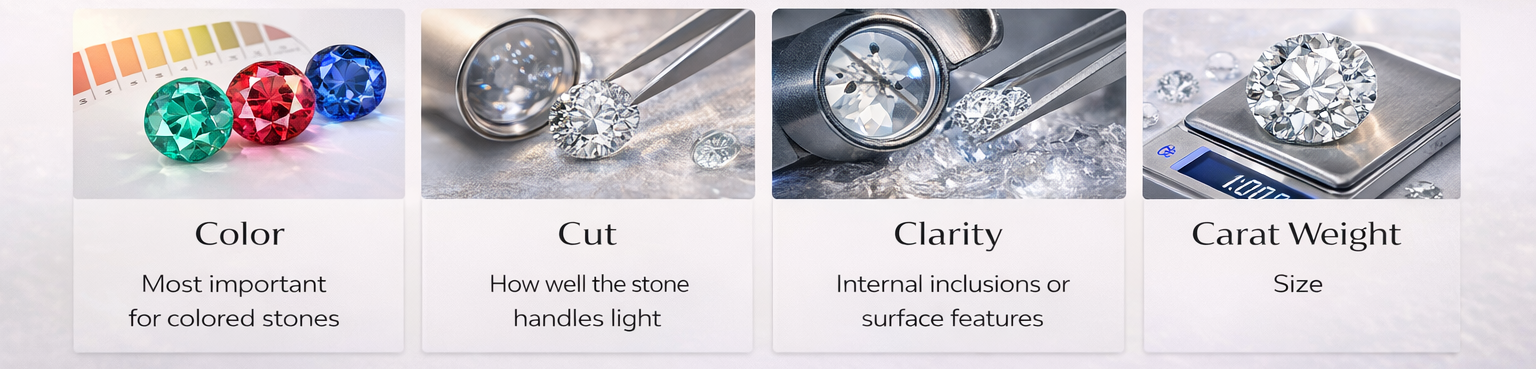 Gemstones are materials valued for their beauty, durability, and rarity—chosen not only for how they look, but for how they perform over time in fine jewelry.