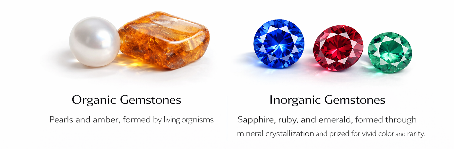 At Black Pearl of Queens, gemstones are selected with a jeweler’s eye: color accuracy, structural integrity, and long-term wearability come first. Most gemstones are minerals formed under geological conditions, while some—such as pearls and amber—are organic in origin.